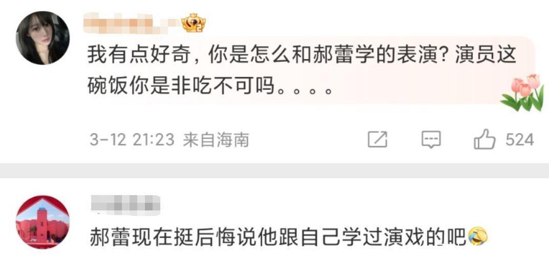 有东说念主问他“演员这碗饭你诟谇吃不可吗?你是若何跟郝蕾学的饰演?”