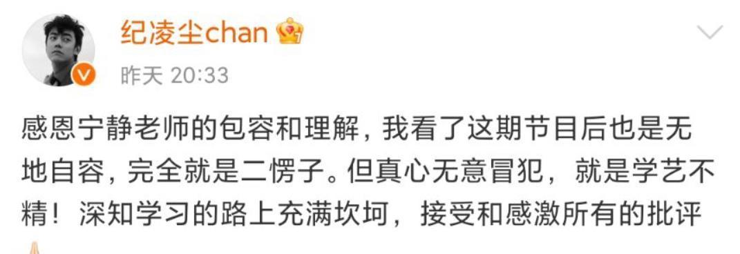 不外纪凌尘应该挺欢跃的,他特地发文感谢宁静的包容和默契,并暗示我方看完节目后亦然无地自容,嗅觉我方全王人便是二愣子。